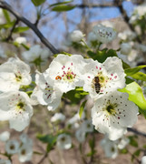 Крушке су процветале, али пчеле не излазе јер је поподне било облачно са ситном кишом.